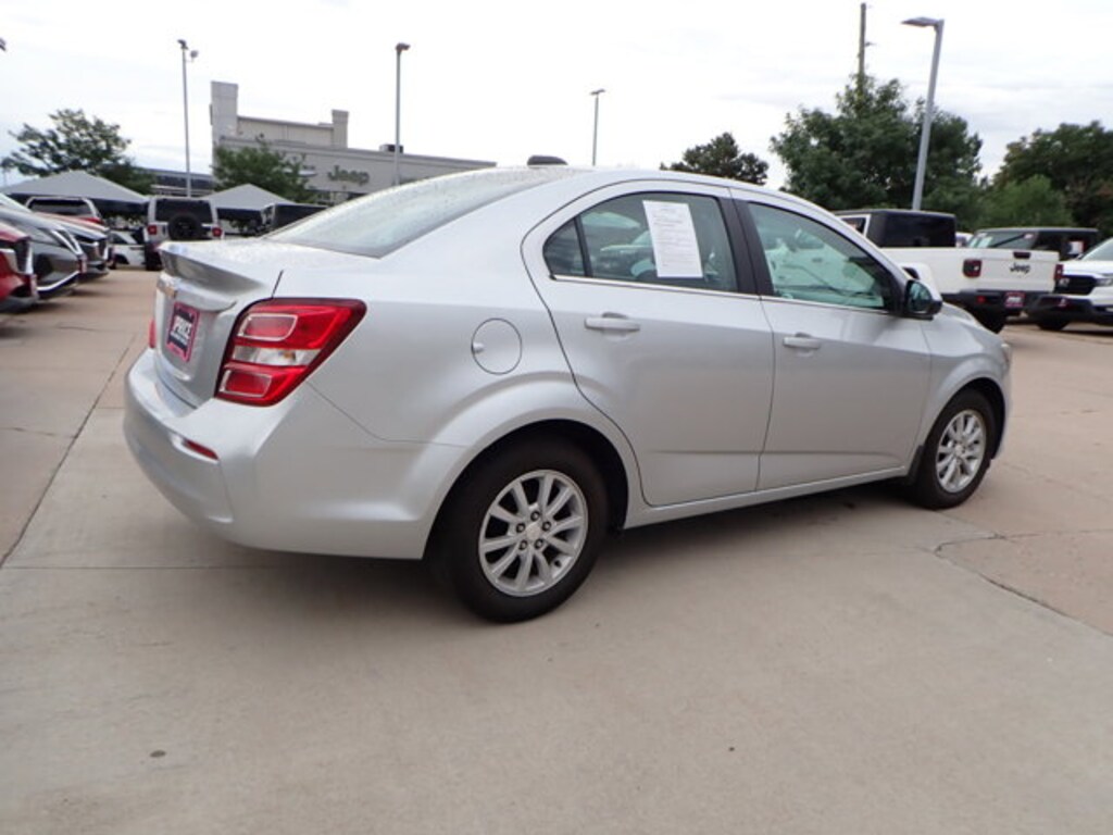 AutoNation Chrysler Jeep Arapahoe is honored to present a wonderful example of pure vehicle design... this 2017 Chevrolet Sonic LT only has 22,331mi on it and could potentially be the vehicle of your dreams! This Chevrolet includes: SILVER ICE METALLIC LT PREFERRED EQUIPMENT GROUP JET BLACK/DARK TITANIUM, DELUXE CLOTH SEAT TRIM Cloth Seats TRANSMISSION, 6-SPEED AUTOMATIC (STD) A/T 6-Speed A/T AUDIO SYSTEM, CHEVROLET MYLINK RADIO WITH 7" DIAGONAL COLOR TOUCH-SCREEN, AM/FM STEREO Smart Device Integration AM/FM Stereo Bluetooth Connection *Note - For third party subscriptions or services, please contact the dealer for more information.* Enjoy an extra level of calm when purchasing this Chevrolet Sonic LT, it's a CARFAX One-Owner. The CARFAX report shows everything you need to know to confidently make your pre-owned purchase. The paint and body on this Chevrolet Sonic LT looks as fresh as the day it rolled off the assembly line. AutoNation Certified vehicles are sold after an inspection of up to 125 points and carry a 90-day, 4000 mile warranty